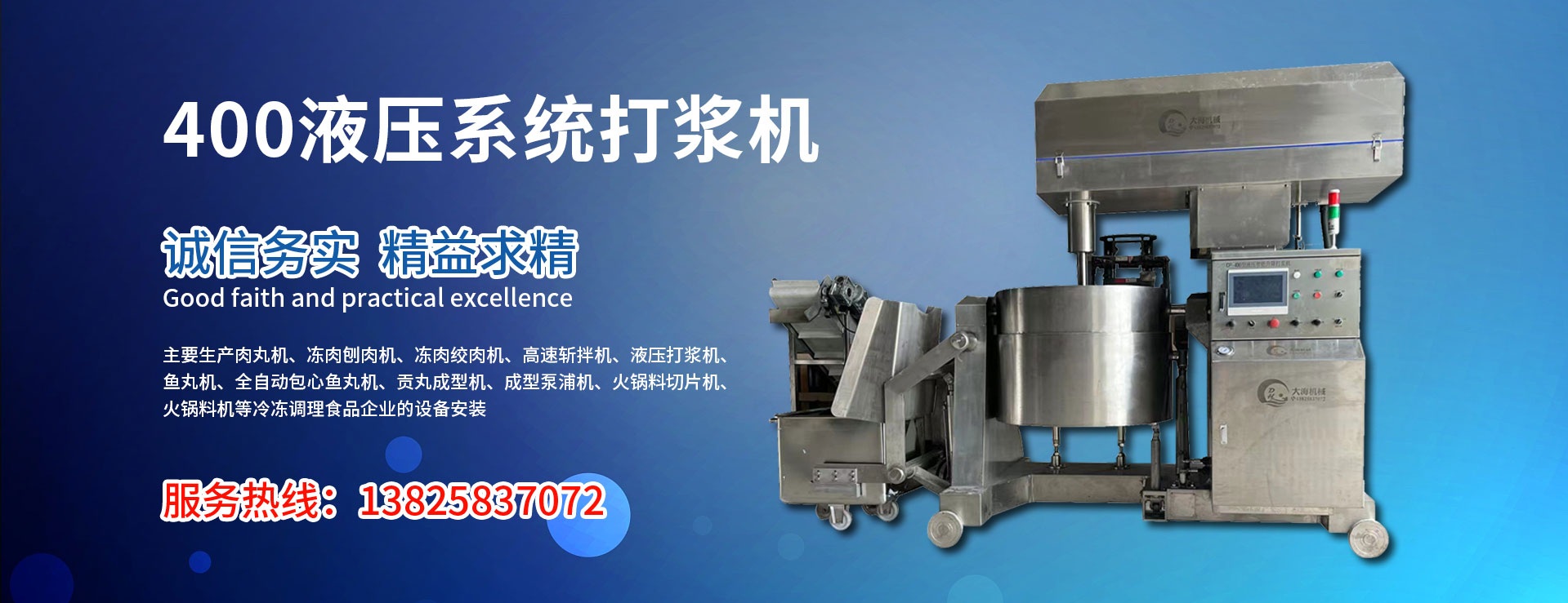 汕頭市大海機械設備有限公司是一家集設計,研發,生產,銷售為一體的食品機械設備生產公司,企業造就了一支素質高,技術過硬的技術人員和員工隊伍,擁有先進的制作工藝和精良的設備,確保了大海食品機械產品的優良品質。主要生產肉丸機,凍肉刨肉機,凍肉絞肉機,高速斬拌機,液壓打漿機,魚丸機,全自動包心魚丸機,貢丸成型機,成型泵浦機,火鍋料切片機,火鍋料機主等冷凍調理食品企業的設備安裝,工藝設計及老廠技術改造等成套輸出終端解決方案。